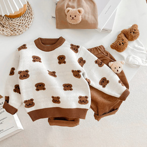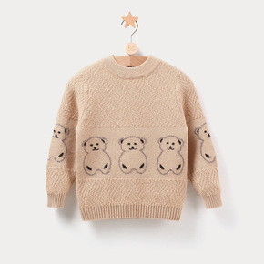 数羊羊一件代发 儿童羊绒衫可爱小熊加厚秋冬打底衫圆...