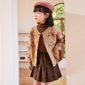 女童外套毛衣2022秋款韩系休闲手工小花重工毛衣女...