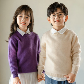 【专注高端】男女童纯羊绒衫针织套头毛衣中大童羊绒加...