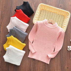 一件代发儿童毛衣打底衫男女童半高领纯色紧身针织秋冬...