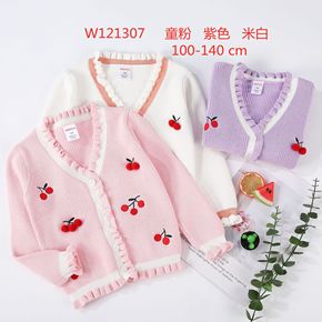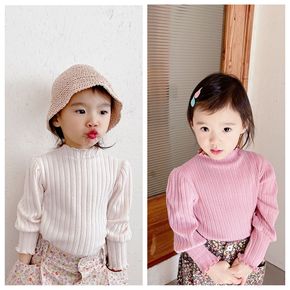 2022童装春季新款 女童春装韩版针织衫木耳边长袖...