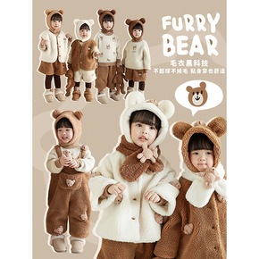 新款男女童宝宝潮童纯棉针织毛衣连帽上衣套头潮牌外套...