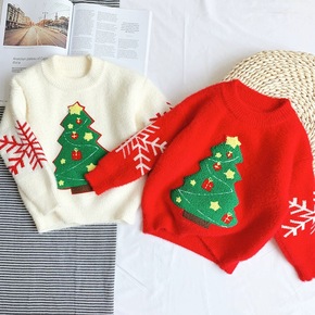 男女童加厚雪尼尔弹力套头针织衫2019新款韩版儿童...
