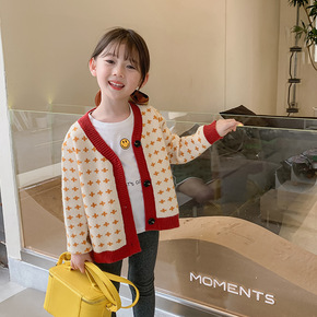 2021秋冬新款儿童开衫中小童女孩针织衫圆领女童长...