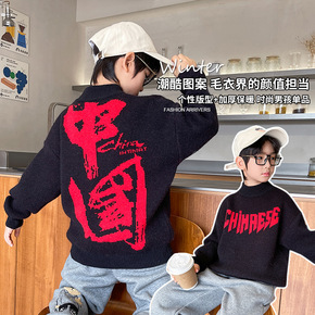 男童国潮毛衣2021款冬装加厚儿童装时髦中大童字母...