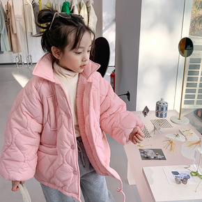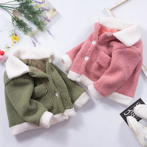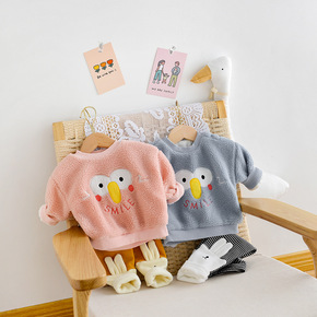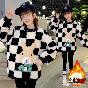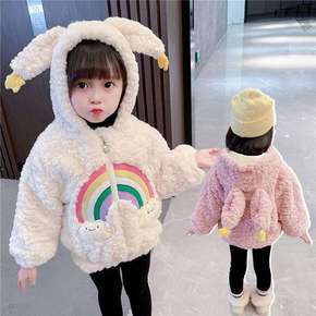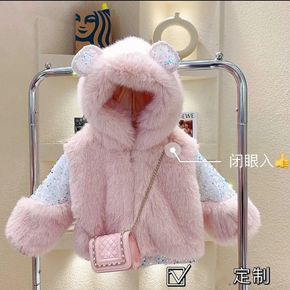 男女童拼接加绒外套毛毛衣2021冬季新款宝宝冬装洋...