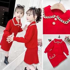 21244秋冬新品自创卡通公主针织毛衣半裙女童2件...