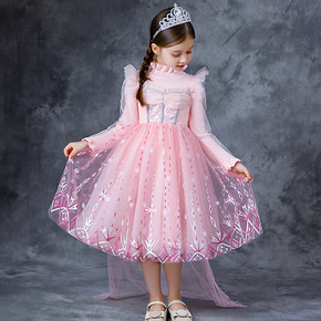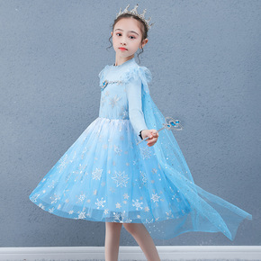 冰雪奇缘公主裙女童艾莎毛线连衣裙带披风洋气毛衣网纱...