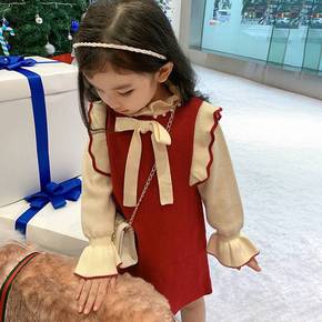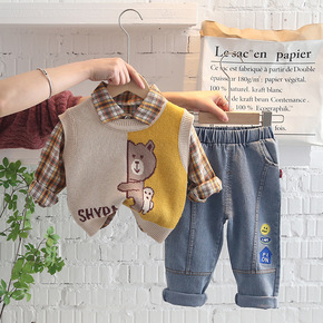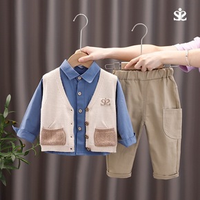 2022春款男女童毛衣衬衫三件套 休闲简约棉质童装...