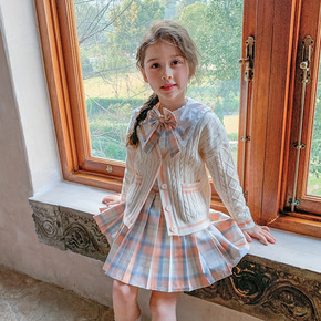 2022春装新款童装JK风毛衣针织开衫学院风衬衫套...