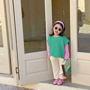 韩国童装2022春款新款中童男女童毛衣马甲纯色套头...