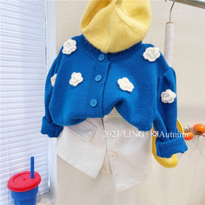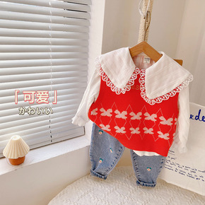 女童马甲毛线衣春装2022新款小童花朵毛衣花边翻领...