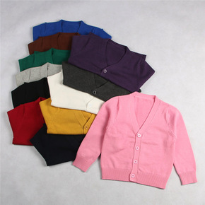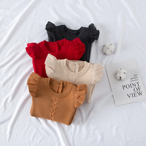 外贸ins童装秋季19新款韩版男女童纯色毛衣套头针...