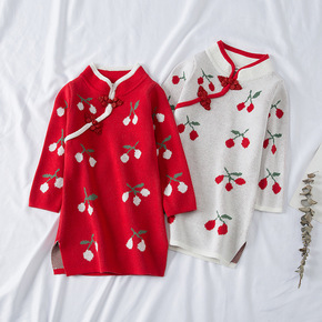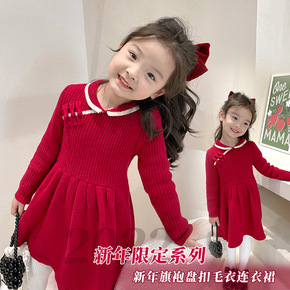 艾摩贝贝 女童宝宝红色新年针织裙子2021冬季儿童...