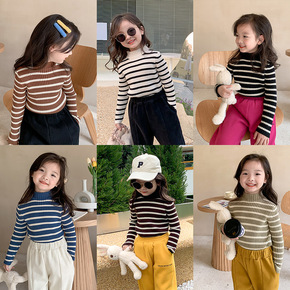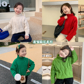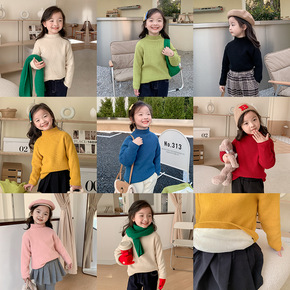 艾摩贝贝韩版女童假两件撞色毛衣2021秋冬儿童半高...