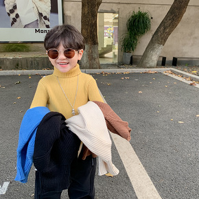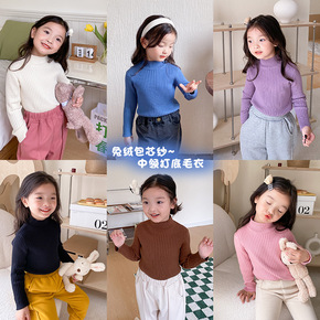 艾摩贝贝男女童高弹半高领打底针织上衣兔绒包芯纱中领...