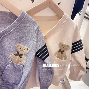 韩版童装2021秋新款马海毛黑白条纹开衫 男女童文...
