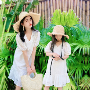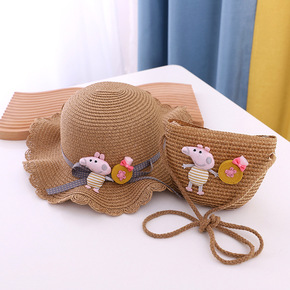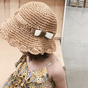 草帽女夏季百搭亲子儿童遮阳帽海边沙滩帽手工可折叠编...
