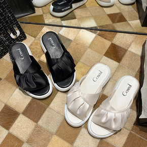 荷叶边凉拖鞋女2022新款夏季外穿厚底网红鱼嘴女式...