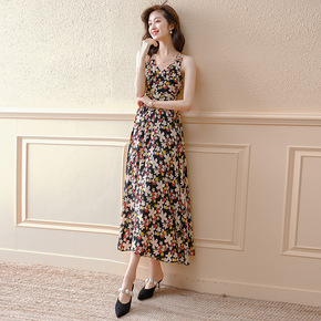 波西米亚印花连衣裙2022新款时尚海边度假仙女甜美...