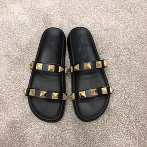 V家铆钉平底拖鞋女夏外穿少女海边渡假沙滩鞋厚底防滑...