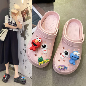 夏季新款网布穆勒鞋海边度假风镂空女式米白色平底尖方...