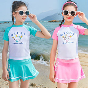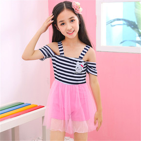 儿童泳衣女孩中童连体平角裤温泉泳衣小童海边泳装批发...