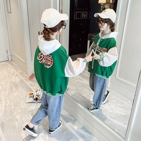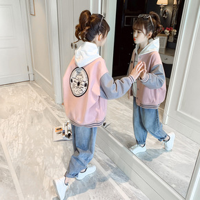 女童洋气外套2021春秋新款中大童时髦韩版网红棒球...