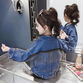 女童牛仔外套秋装2021新款儿童秋季洋气上衣中大童...