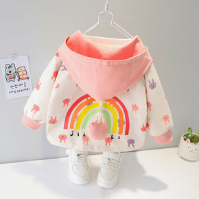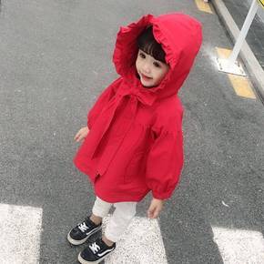 风衣女童外套2021新款秋装公主韩版女宝宝洋气连帽...