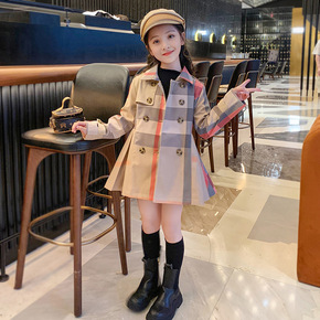童装女童风衣外套中长款洋气2022加绒加厚新款中大...