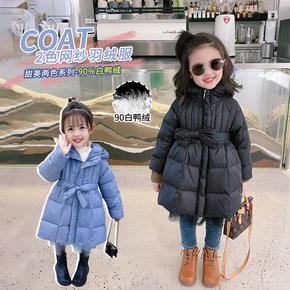 女童羽绒服中长款洋气白鸭绒加厚女宝宝派克服冬装20...
