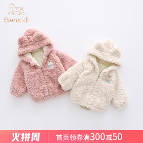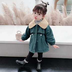 女童加绒外套秋冬2021新款洋气女宝宝连帽棉袄儿童...