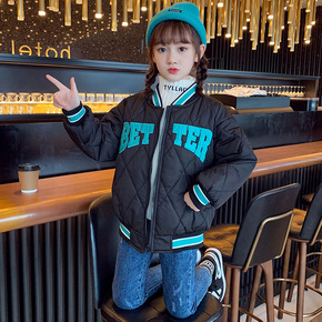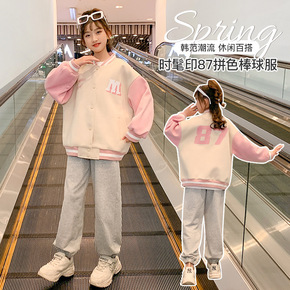 女童外套春秋装2022新款洋气儿童女孩棒球服薄棉衣...