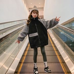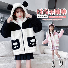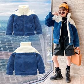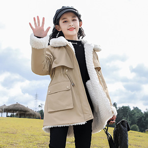 女童外套冬款2021秋冬装新款中大儿童加厚洋气羊羔...