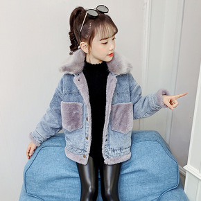 女童外套2021新款洋气大童秋冬款季加厚加绒牛仔儿...