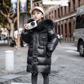 反季儿童羽绒服女童炫彩亮面洋气加厚白鸭绒真毛领冬装...
