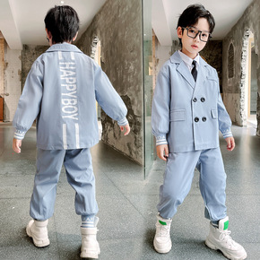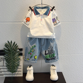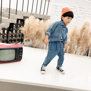 2022春秋装新款韩版男童牛仔套装儿童复古洋气翻领...