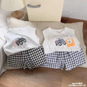 奶哈2022夏季新款男女童韩版洋气卡通套装宝宝背心...