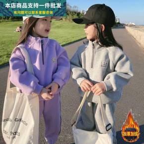 洋气时髦宝宝加绒卫衣女2022新款休闲运动加厚卫裤...