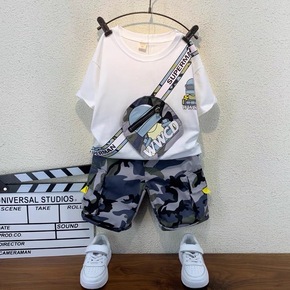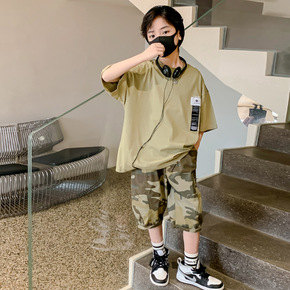 男童夏季迷彩套装2022新款短袖儿童T恤宝宝中大童...