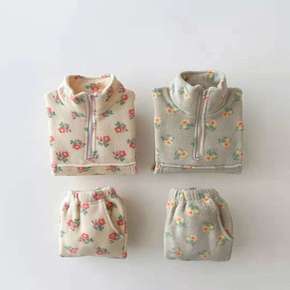 韩版女宝宝休闲秋冬保暖立领碎花拉链洋气婴幼童套装...