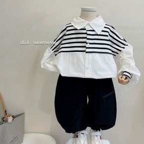 男童韩系套装2022春装新款男童拼接衬衣洋气束脚工...
