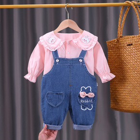 女宝宝秋装长袖套装2022新款韩版儿童秋季洋气牛仔...
