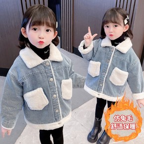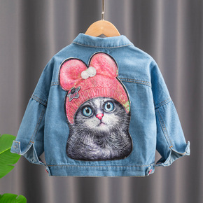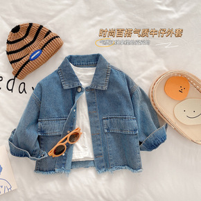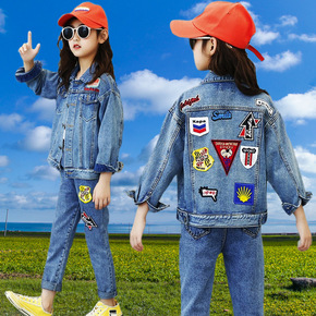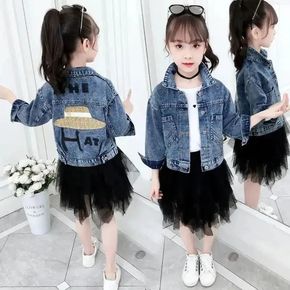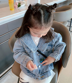 儿童时尚洋气秋装夹克上衣女童外套秋季新款女宝宝牛仔...