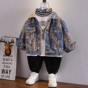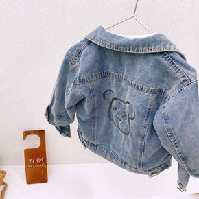 儿童韩版刺绣小熊牛仔外套男童女童春秋装牛仔衣小童宝...