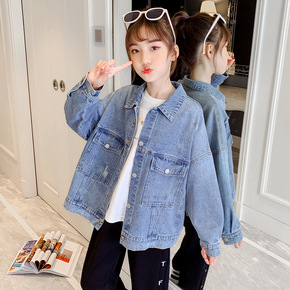 女童牛仔外套2021新款韩版春装中大童网红儿童装洋...