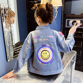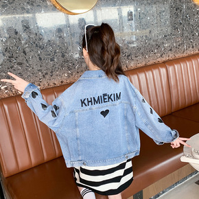 女童外套 秋装新款童装儿童中小女童刺绣爱心牛仔外...