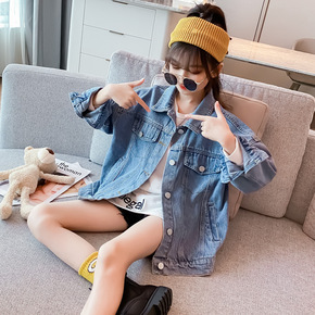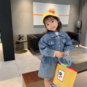女童韩版中长款牛仔外套2021秋装新款宝宝洋气长袖...