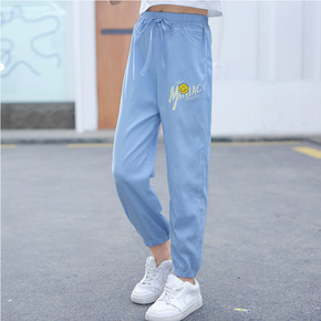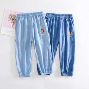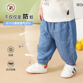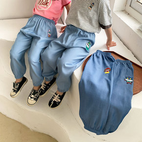 春夏中小童天丝棉仿牛仔防蚊裤儿童卡通绣花休闲裤长裤...